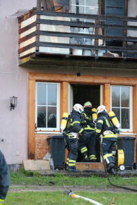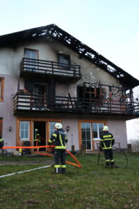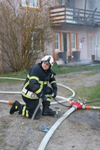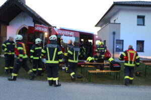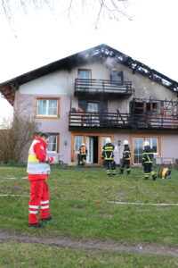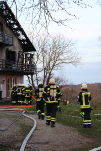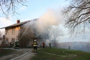 Am 28. März wurden wir um 17:45 Uhr mit den Einsatzstichworten „Brand Gebäude – Unklare Lage“ in die Ortschaft Schweigertsreith alarmiert. Auf dem Weg zur Einsatzstelle wurde seitens LFK Alarmstufe 2 ausgelöst. Als wir am Einsatzort eintrafen, schossen Flammen aus den Fenstern des Obergeschosses, der Dachstuhl stand in Vollbrand.