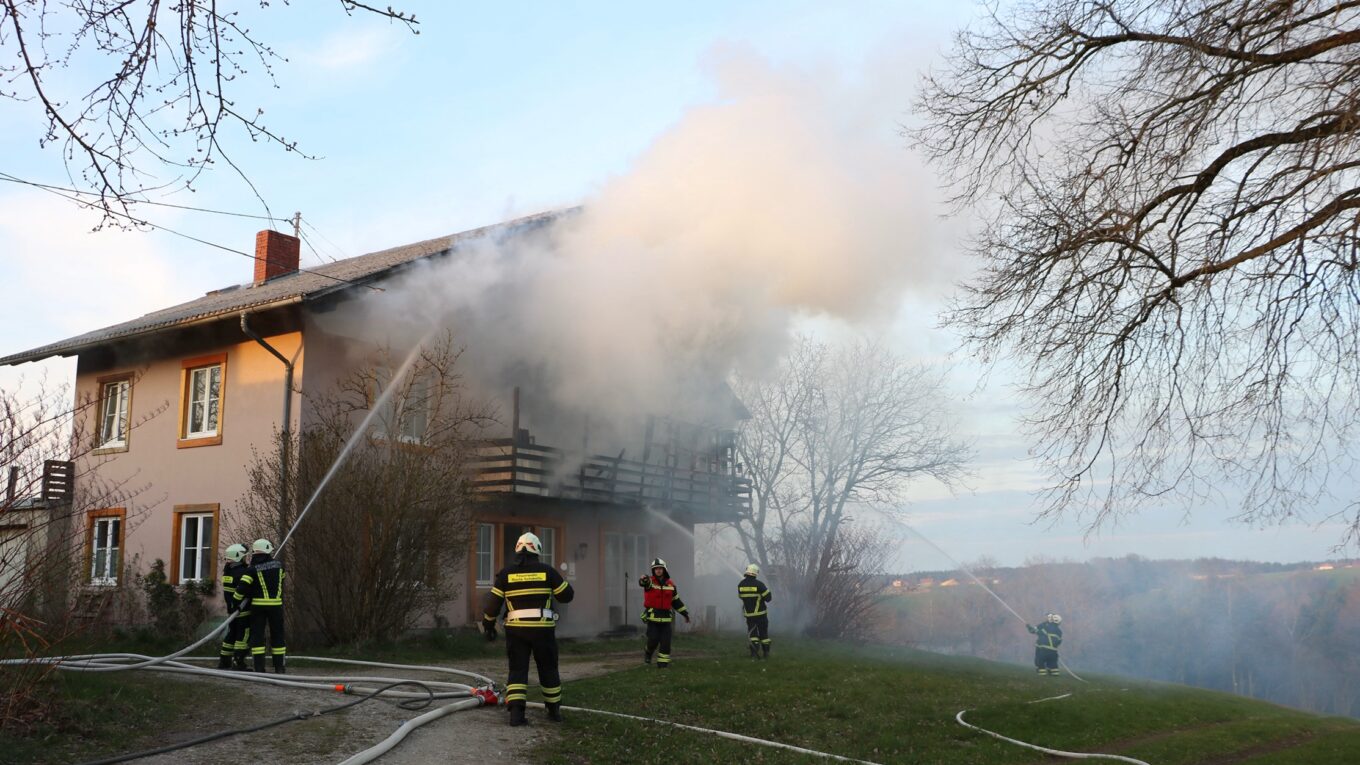 Am 28. März wurden wir um 17:45 Uhr mit den Einsatzstichworten „Brand Gebäude – Unklare Lage“ in die Ortschaft Schweigertsreith alarmiert. Auf dem Weg zur Einsatzstelle wurde seitens LFK Alarmstufe 2 ausgelöst. Als wir am Einsatzort eintrafen, schossen Flammen aus den Fenstern des Obergeschosses, der Dachstuhl stand in Vollbrand.